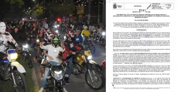 La Alcaldía de Neiva emite el Decreto 0392 de 2025, implementando estrictas restricciones de movilidad y uso de espacio público para garantizar un Halloween pacífico y seguro para todos los ciudadanos.